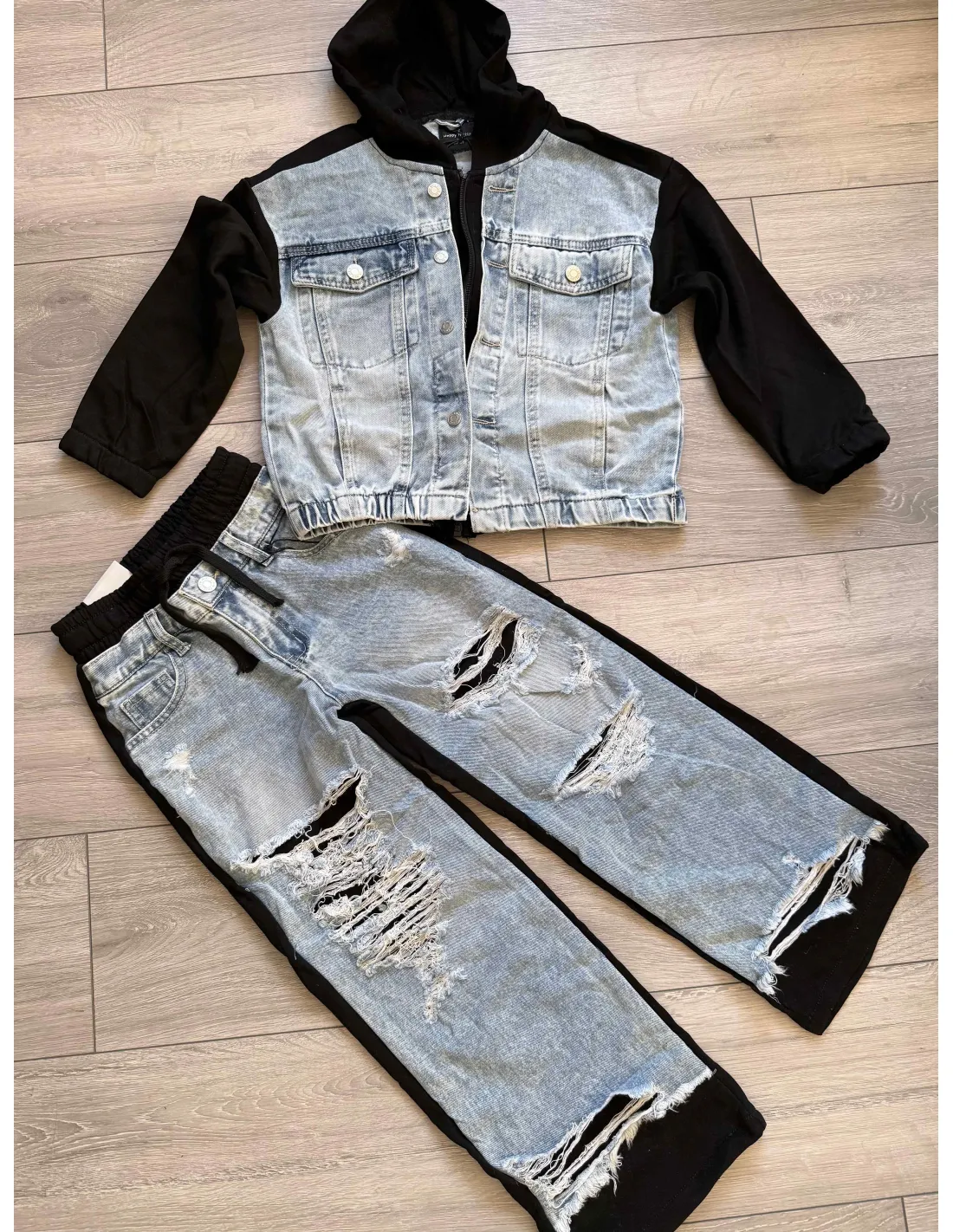 TOP! Elastický komplet bundička + teplákové rifle. Talianska výroba