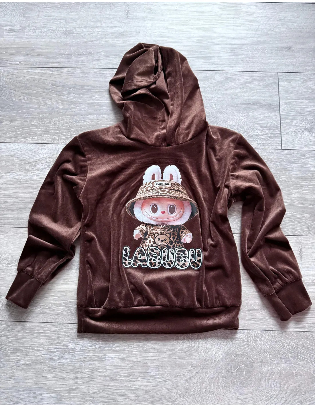 Hebká velúrová mikina LABUBU s rovnakým veľkým obrázkom aj na zadnej strane. Talianska výroba