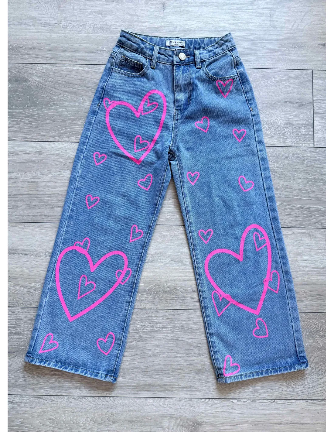 Elastické vyšívané rifle s nastaviteľným pásom.